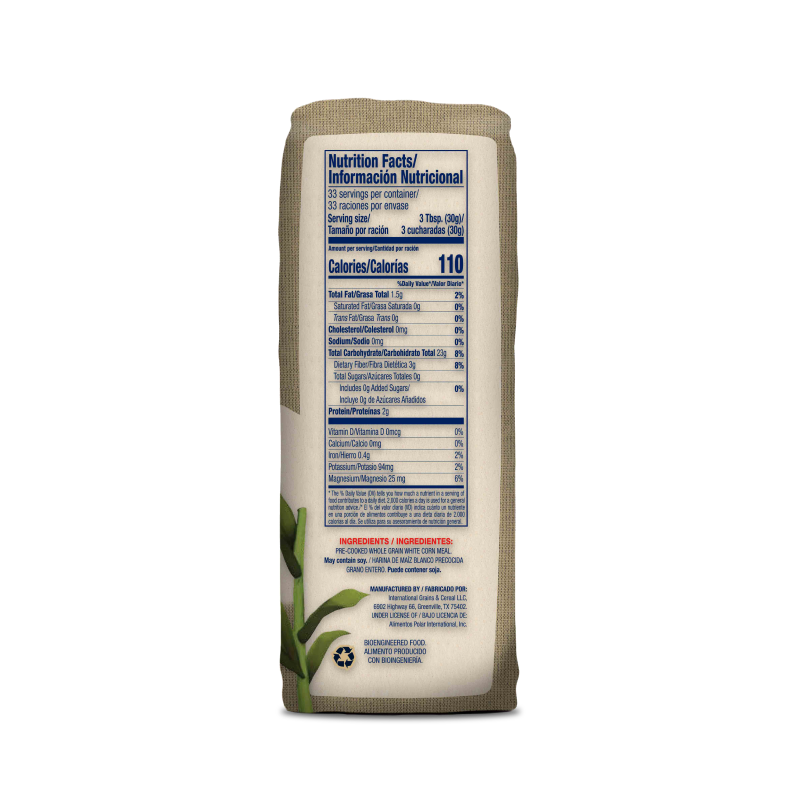 P.A.N. PRE-COOKED WHOLE GRAIN WHITE CORN MEAL 2LB. (GLUTEN FREE)